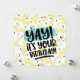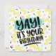 Cool birthday card with the funny text: Yay, it's your birthday! With nineties memphis style shapes and graffiti letters for cool teenage girls.