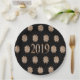 Year 2019 Elegant Black and Gold Four Leaf Clovers Paper Plate