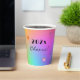 Ideal for after the new year celebration. Colourful gradient rainbow background with bright stars, 202X "Cheers" and message on back decorate these new year paper cups. Easily change text to make it yours using the Template provided. Dimensions are 3.75"h x 3"d. The cup is 8oz capacity and ideal for cold and warm beverages. 12oz capacity is also available. Add a lid for a small charge. See "About This Product" at side for more information. Printed in USA.