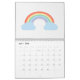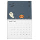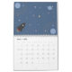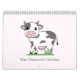 A 12 months Calendar with seasonal illustrations: a cute cow on cover, a snowy landscape with a bullfinch for January, a lemon and orange pattern for February, an outer space decor for March, a rainbow for April, a cute frog for May, a spring landscape with flowers and mountains for June, a BBQ for July, bees and honeycombs for August, a fall pattern for September, a Halloween decor for October, a lighthouse for November, a Christmas Nutcracker for December and a cute hippo on the back.