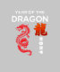 Chinese Zodiac Year of the Dragon 2024. Red image of a dragon and red Chinese word of dragon, with white text. This is a great gift for everyone.