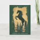 Celebrate the Year of the Horse 2026 with this elegant green and gold card featuring a majestic horse silhouette surrounded by forest pines.