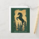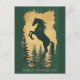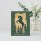 Celebrate the Year of the Horse 2026 with this elegant green and gold card featuring a majestic horse silhouette surrounded by forest pines.