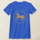 A chic, bright blue sleeveless women's top, with a gold-effect horse motif, from a hand-painted illustration by Judy Adamson. You can easily change the size and position of the horse motif if you wish.