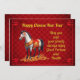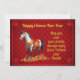 Our Year of the Horse Chinese New Year Holiday Card celebrates the Year of the Horse. The image and text are printed on a red background with an orange crisscross pattern.