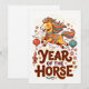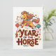 Lunar New Year greeting card featuring a vibrant illustrated horse surrounded by traditional decorative elements, celebrating the Year of the Horse. Suitable for New Year wishes, cultural celebrations, and zodiac-themed gifting, with a modern illustration style that remains respectful and widely appealing.