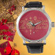 Celebrate the Year of the Snake in style with this beautifully designed 2025 watch. Featuring intricate gold Chinese motifs, including a snake, lanterns, and auspicious symbols on a vibrant red background, this watch is perfect for ringing in the Chinese New Year. The sleek black leather strap complements the bold design, making it a sophisticated accessory for any festive occasion. Ideal for gifting or adding a touch of cultural significance to your collection, this timepiece combines tradition and elegance in one stunning package.