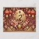 Celebrate the Year of the Snake with this exquisite Chinese New Year postcard design. Featuring a majestic golden snake surrounded by delicate plum blossoms, traditional red lanterns, golden ingots, and intricate cultural patterns, this design symbolises prosperity, renewal, and good fortune. The elegant colour palette of rich red and gold adds a festive and sophisticated touch, making it the perfect way to share warm holiday wishes and blessings with loved ones. Add your custom message in place of the template text at the back of the card.