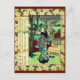 Year of the Snake. Mi ikenohata (Year of the snake: Ikenohada). Beautiful Japanese Print Postcards. Print shows Japanese kanji and the full length image of a woman, standing outside a building, wearing kimono and geta, with view of village connected by a bridge in the background. Image is patterned with blossoms. From the series: Ichiyōren mitate edo meisho mitate jūnishi : Famous sites of Edo corresponded to animals of the zodiac from the Kyoka Circle Ichiyo. This poster has been beautifully restored and enhanced by us at Vintage East from a Japanese Woodcut Print circa 1800. We have also added a complimentary border around the image which really makes it an eye catching work of art. We also have this vintage poster on other products too!