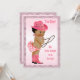 Girls' elegant pink vintage ethnic cowgirl baby shower invitations with a beautiful antique illustration of a cute and adorable light skinned African American baby girl with black hair, and stylish pink modern Stetson cowboy hat, pink diaper with ruffles, pink cowboy boots, and a lasso on a pretty pink gradient background with a classy black polka dots border. The text on the front reads Ye-Haw! Our little cowgirl is on her way! Chic, whimsical, trendy, feminine, glamourous, girly, fun, fashionable affordable personalised / personalised custom girl Baby Shower invites for your cowgirls theme / themed showers. Decorated on both sides. Double sided printing. Cool, awesome, unique and original, fashionable, contemporary invites. If you need any assistance customising your product please contact me through my store and I will be happy to help. PLEASE NOTE:- All invitations on Zazzle have flat printed images.