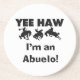 Yee Haw I'm an Abuelo T-shirts, mugs, cards, stickers, announcement buttons, abuelo keepsakes, and other abuelo apparel and gifts with a buckaroo horse and black or white text design. These apparel and gift items are perfect for first time grandparents or seasoned abuelos of a new arrival!