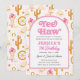 Celebrate your little one’s big milestone with this charming Yee Haw Western Cowgirl Seventh Rodeo 7th Birthday Invitation! Perfect for a 7-year-old’s "Seventh Rodeo," this design features pink retro typography framed by an elegant arch and surrounded by a playful pattern of cowgirl boots, hats, cacti, and stars. Fully customizable with your child’s name and party details, this sweet and stylish invite sets the stage for a joyful and memorable 7th birthday celebration.