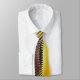 A yellow and gold boomerang explosion over black and brown. A power tie.
