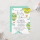 A cute gender-neutral baby shower invitation with a colour scheme that works beautifully for a baby girl or baby boy. Yellow and aqua-teal hot air balloons float around the custom text that you can personalise with your baby shower details.
