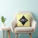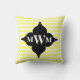 An elegant chevron pattern in yellow and white with a black quatrefoil motif in the centre. Personalise both sides of this beautiful decorator throw pillow with your monogram.