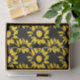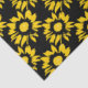 Tissue paper printed with original sunny yellow sunflower pattern on a black background.