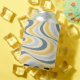 Abstract illustration of colourful retro style swirl design in pastel yellow, blue, yellow and pastel blue colours for everyone who likes groovy retro style waves decoration.