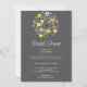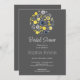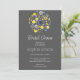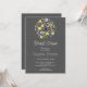 The inviting dark grey background sets the stage, providing a chic and elegant backdrop for the focal point of the invitation – a whimsical circular bouquet. In vibrant shades of yellow and blue, the bouquet comes to life, showcasing the beauty of nature in a playful and artistic manner. The combination of these vibrant hues adds a cheerful and lively vibe to the invitation, reflecting the joy and excitement of the upcoming celebration.