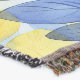 A quality printed throw has its advantages. This is a much finer weave throw than its loopier cousins, and though lighter, it is worth the investment for custom room accessorizing. The back is much prettier than the typical brown, and the fringe on the long sides very vivid, the selvage nicely done. Before photographing, I washed the throw in cold water, delicate, with a thicker woven throw the same size. On tumble dry low, this throw was dry in half the time as the other. This is a very practical quality if you use throws for furniture covers or to wrap up in frequently. The sleekness of the fabric makes it a great layer for accenting or protecting without the feeling of sitting on too much stuff. Perfect for napping or when you feel a light chill coming on. The color printing is beautiful and on this fabric, matched the design and color of my Photoshop image. This is an advantage for blending room fabrics and colors. The fringe on the short sides prints the colors from the design image and therefore varies from the side fringe. I streaked a white fractal line through the plaid pattern to give the illusion of weaving. This printed as crisp as an illusory thread, and put some white in the short side fringe, showing another advantage of print vs loomed- for artistic purposes, line lines, detail, and color integrity can be planned and preserved. My loomed throws have color limitations and more of a needlepoint texture. Print throws reproduce an exact image. The throw felt a little stiff straight out of the package, but this went away in the first delicate wash. Of course I searched the wash water for ink or bleeding and there was none.