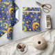 Yellow and Blue Starry Night Mosaic Glass Pattern Wrapping Paper