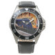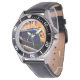 My husband loves the watch, he likes the dial, the graphics, the band, and it keeps perfect time.