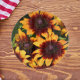 Chop and dice your food safely on this decorative, round glass cutting board that features a photo image of yellow and bronze Rudbeckias. A lovely, floral design!