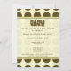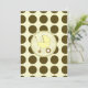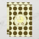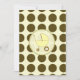An invitation featuring a brown polka dot background over warm beige with light yellow trim. Personalise the brown text with details of your event. Opposite side is solid polka dot with a yellow baby carriage inside a matching circle shaped frame.