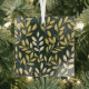 Yellow and Cream Leafy Branches Pattern Glass Tree Decoration