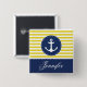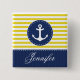 Nautical button with yellow and navy blue stripes, customisable text and anchor are white.