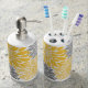 Yellow and Grey Chrysanthemums Floral Pattern Soap Dispenser And Toothbrush Holder