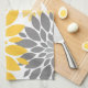 Yellow and Grey Chrysanthemums Floral Pattern Tea Towel