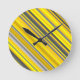 Yellow and Grey Diagonal Lines/Stripes Pattern Round Clock