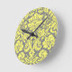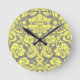 Yellow and Grey Fancy Damask Patterned Round Clock