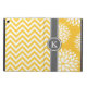 Yellow and Grey Monogram Chevron and Floral Cover For iPad Air