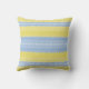 A lovely yellow lacy knit pattern square throw pillow with light blue stripes that you can personalise by adding your name and monogrammed initial to. This is part of the Meadowlark and Little Boy Blue Knit Collection. Flat printed image NOT made with yarn or lace.