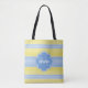 Yellow and Light Blue Knit Pattern With Monogram Tote Bag