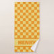 Yellow and Orange Chequerboard Custom Name Towel