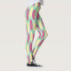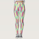 These leggings have a geometric design of made of a background of sea-green and light blue rectangles with yellow and pink ovals on top.
