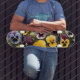 Yellow and purple pansies watercolor painting skateboard