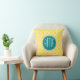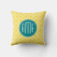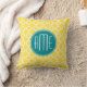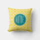 Yellow and Teal Quatrefoil Pattern Custom monogram Cushion