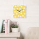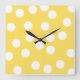 Yellow and White Big Dot Pattern. Square Wall Clock
