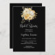 The simplicity of the design adds to its allure, making a statement through understated elegance. The graceful interplay between the black background and the soft, delicate hues of the floral bouquet creates a visually stunning effect, making this invitation a true work of art.
