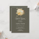 The deep, sophisticated shade of dark grey serves as a striking backdrop, allowing the romantic and feminine white and yellow floral bouquet to truly shine. At the heart of the invitation, a graceful arrangement of flowers in shades of white and yellow, accented by lush greenery, captures the essence of love and new beginnings. The simplicity of the design adds to its elegance, creating an invitation that speaks volumes with its understated beauty.