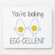 Yellow and White Hand Drawn Egg-cellent Egg puns Mouse Pad