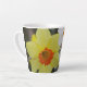 Chill out with a coffee latte in this ceramic mug that features a wrap-around photo image of yellow and white Narcissus flowers with orange cups. A lovely, floral design for the springtime!