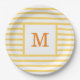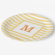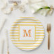 Yellow and White Stripes Custom Monogram Paper Plate