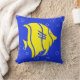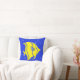Yellow fish on Blue PILLOW on one side and Yellow and white strip on back. design by Sandy Closs. Part of the ocean themed pillow decor . Design by Sandy Closs"