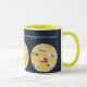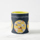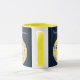 Dark blue mug with yellow circle city pattern. Bright spot for your kitchen, perfect gift for abstract and urban style lovers and those who want to find beauty in everyday life.
