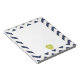 A gift for teachers featuring an illustration of a yellow apple over a navy chevron background.