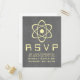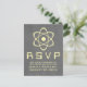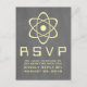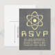 Cute and nerdy Atomic Chalkboard Wedding Response Card featuring a simple atomic symbol in yellow on a chalkboard look background. This geeky and fun wedding RSVP postcard is perfect for the science enthusiast couple! Easy to customise, simply add the details of your wedding in the spaces provided. Click "Customise It" to find more personalisation options.